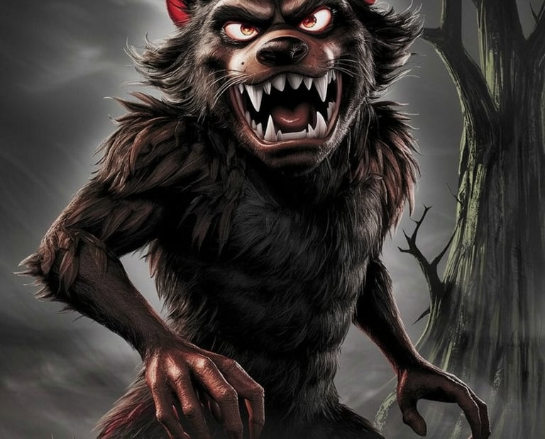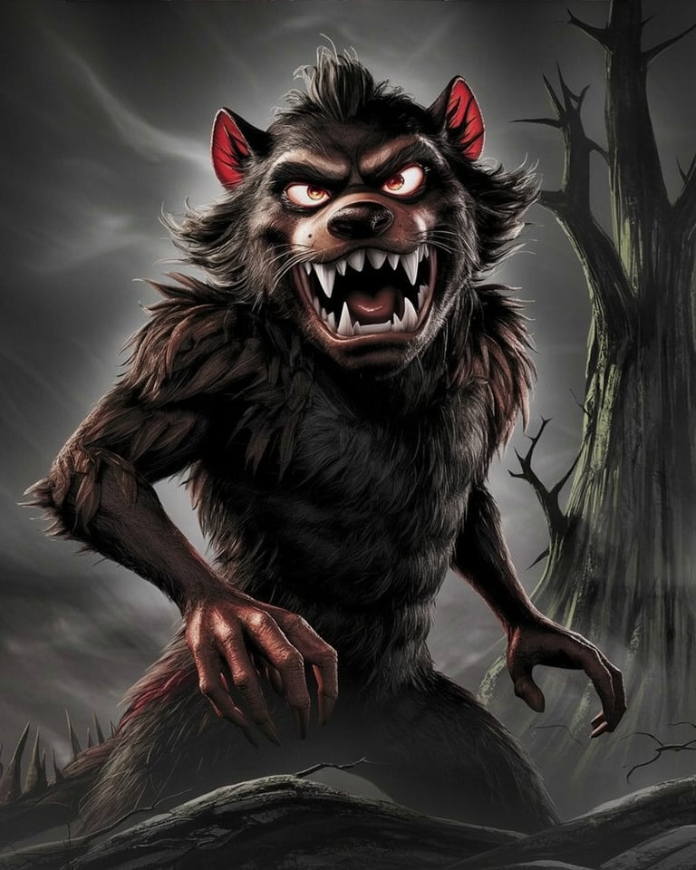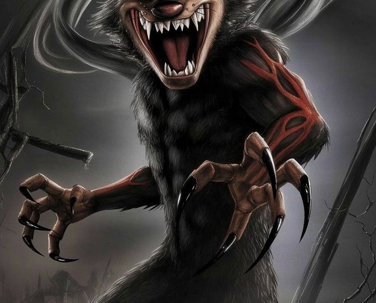 A terrifying monstrous animal emerges from the darkness, blending raw ferocity with eerie mystery.